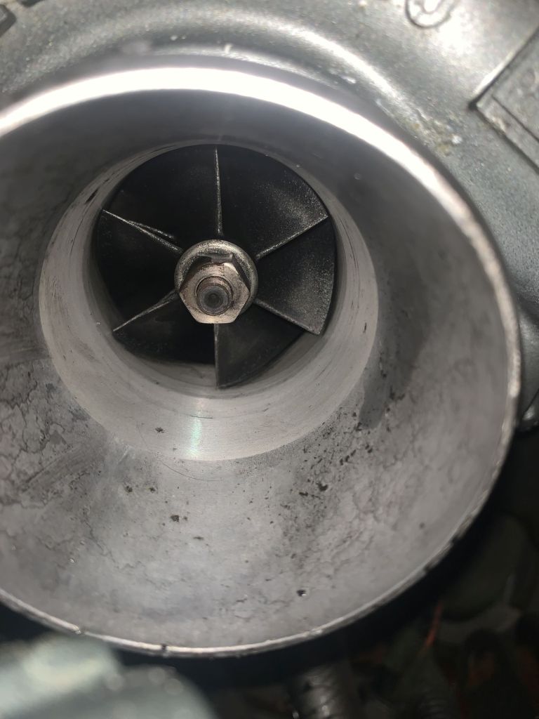 Volker lässt den Motor laufen, das Turbinenrad bleibt stehen. Wir gehen auf Nenndrehzahl, das Turbinenrad steht immer noch. Im Stand teste ich die Freigängigkeit – keinen Millimeter lässt sich die Läuferwelle im Lagergehäuse drehen.