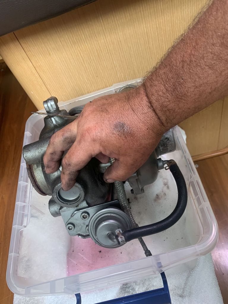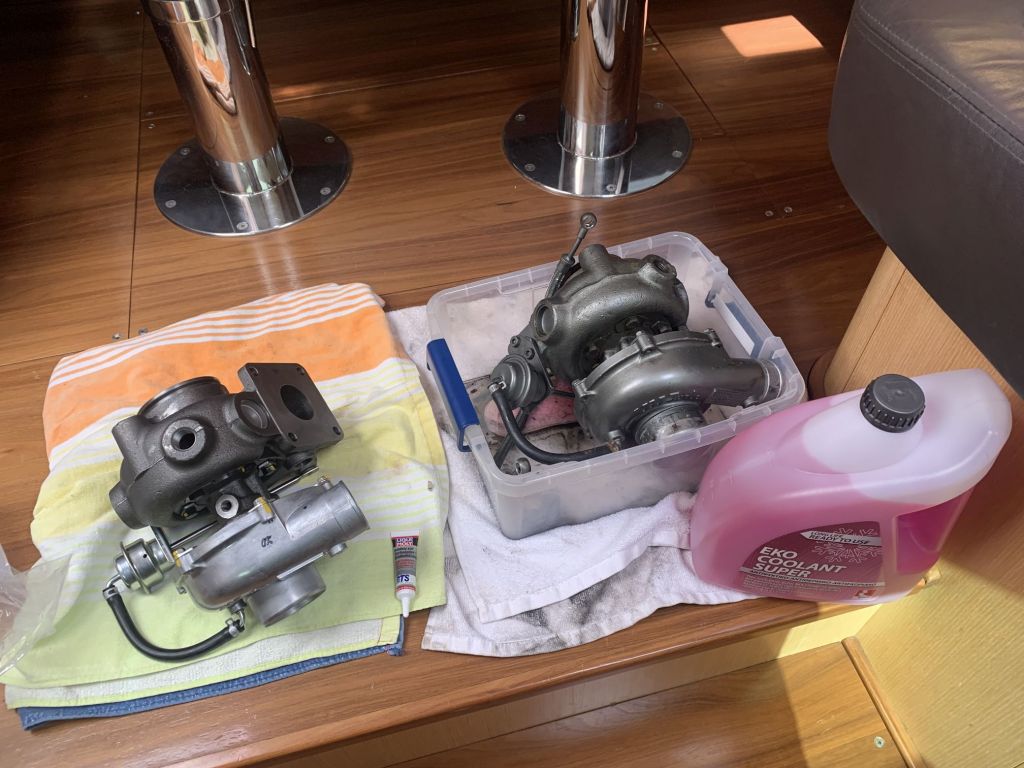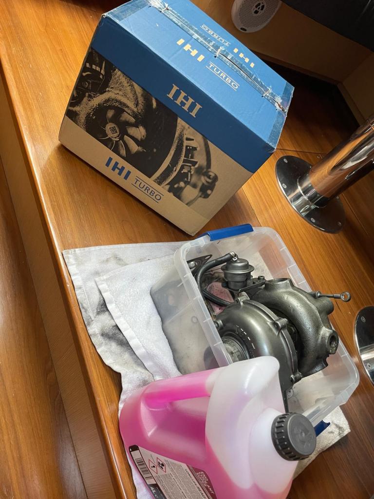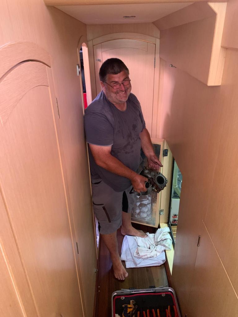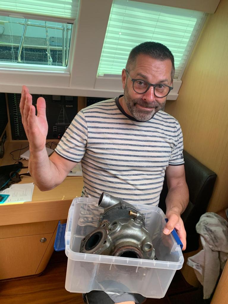 Wir diagnostizieren den Turbo als defekt. Ok, das ist das eine, aber welche Schritte sind nun zu tun um das Problem schnell zu beheben? Volker fängt sofort an zu recherchieren, wo bekommt man in Griechenland einen Lader für den großen Yanmar 4LHA?
