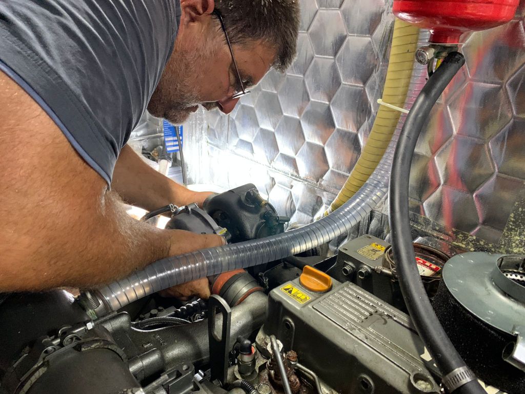 Nach relativ kurzer Zeit war der Wärmetauscher montiert und der Motor startklar – sollen wir es wagen? Würde alles dicht sein?