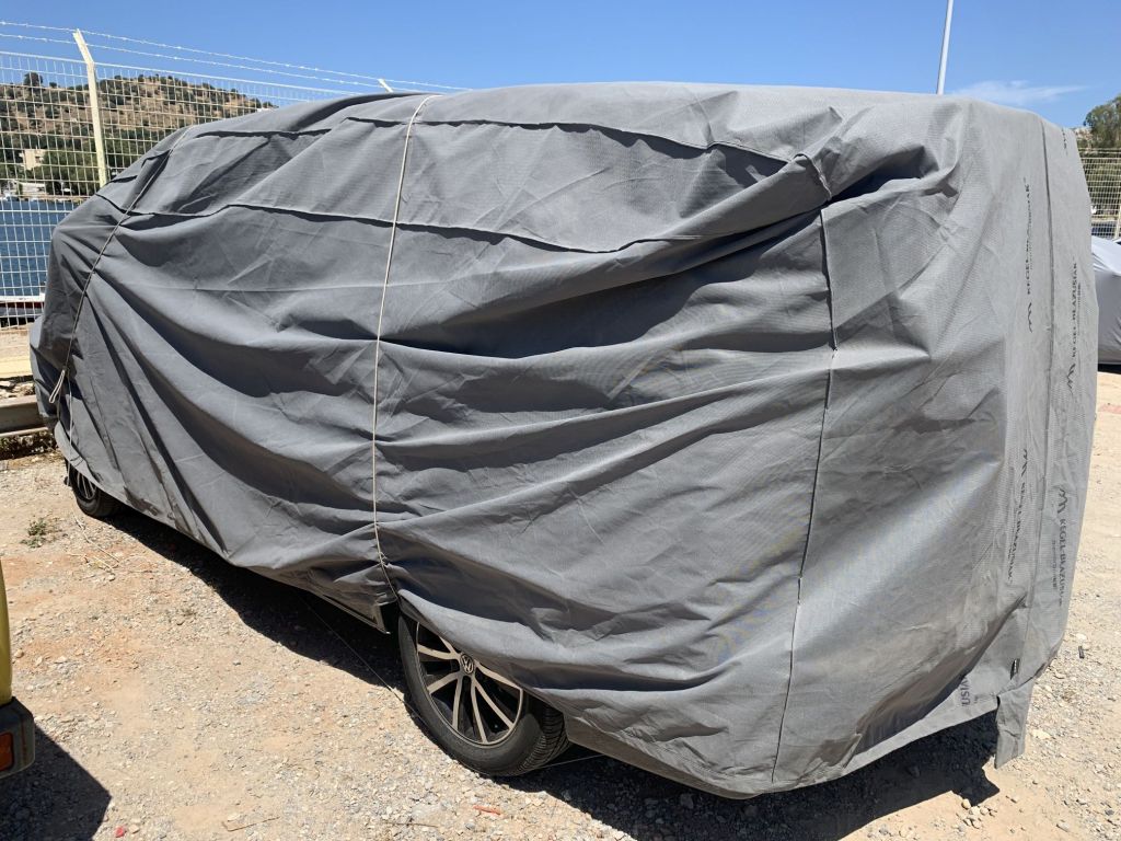 Sibylle und ich richten am Weg noch die Plane von Felix´ VW Bus, wir wollen helfen, dass der wertige Wagen keine Schäden davonträgt. Wir ziehen die vom Wind verwehte Plane wieder an Ort und Stelle und befestigen diese neu.