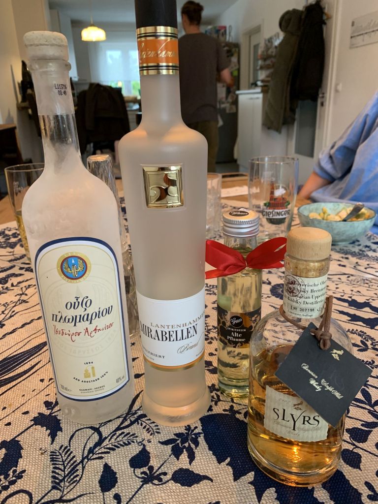 Als Dessert gönnen wir uns etwas flüssiges – dies unter dem Motto „Hellas meets Bavaria“. Der Abend war herrlich! Spät gingen wir ins Bett und schliefen sofort ein. Das war gut so, denn morgen nach dem Frühstück schon geht es weiter Richtung Bodensee.