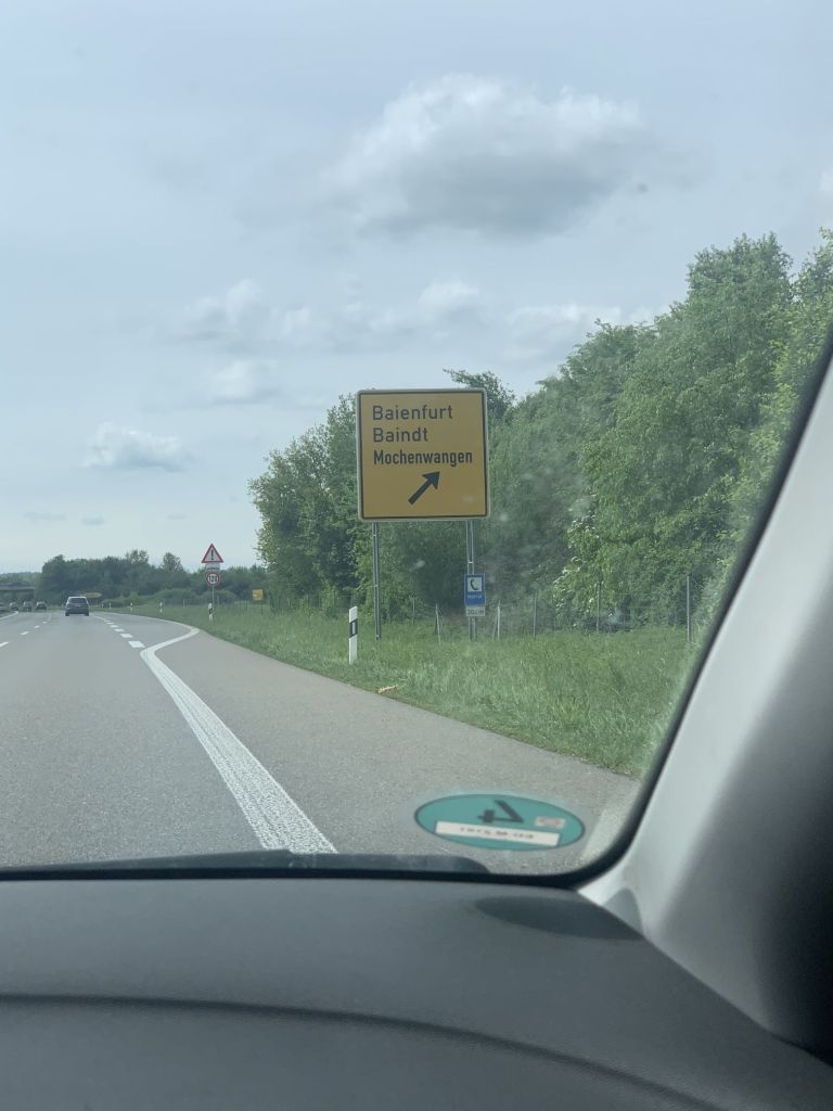 Wir waren froh, als wir die Autobahn endlich verlassen durften. Auf unserem Weg fuhren wir direkt an Baindt vorbei – witzig – dorthin müssen wir als Nächstes, doch gemach, gemach, zuerst eine Pause, dann der Besuch bei der Familie…