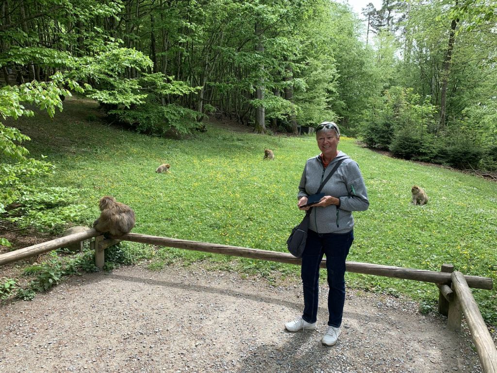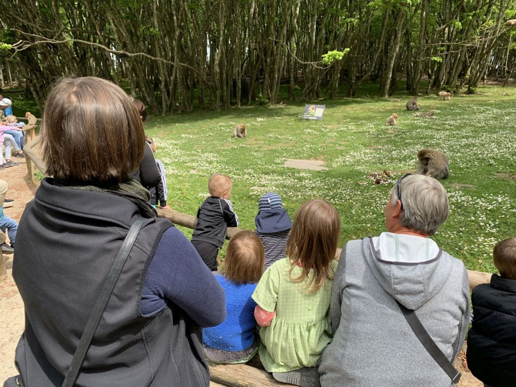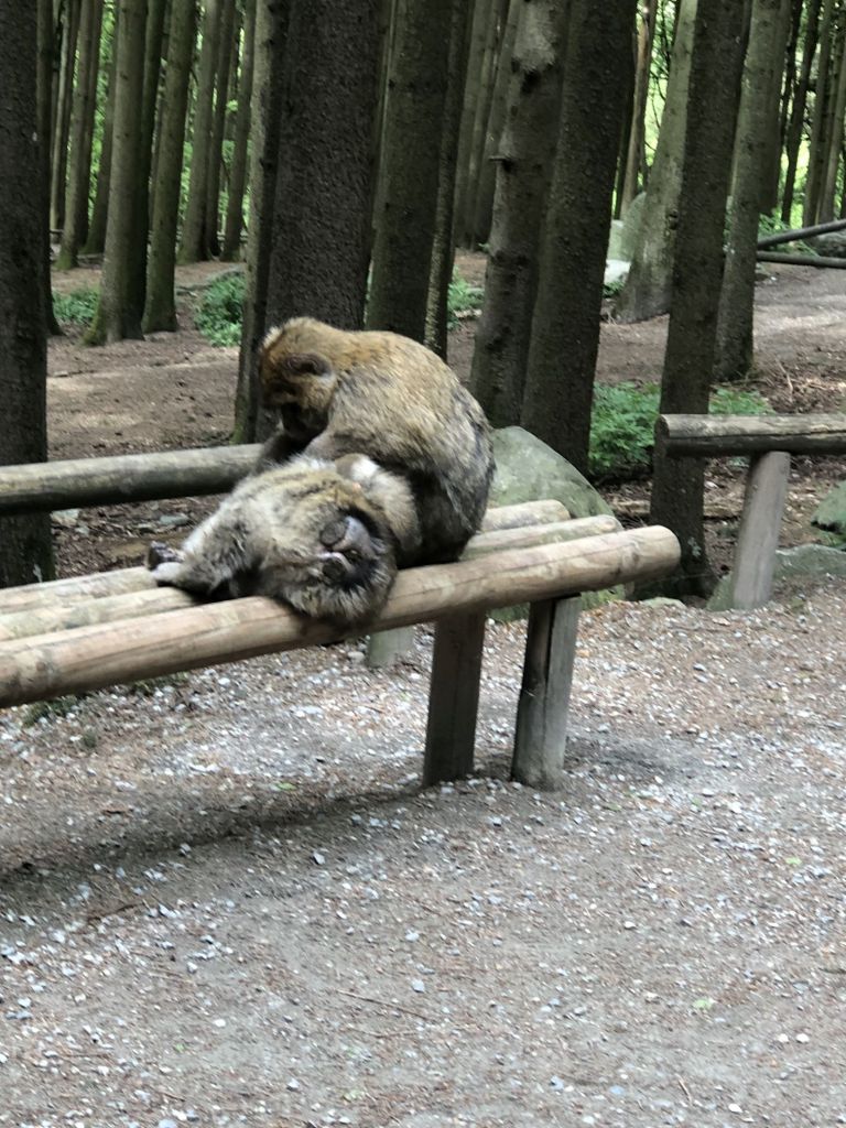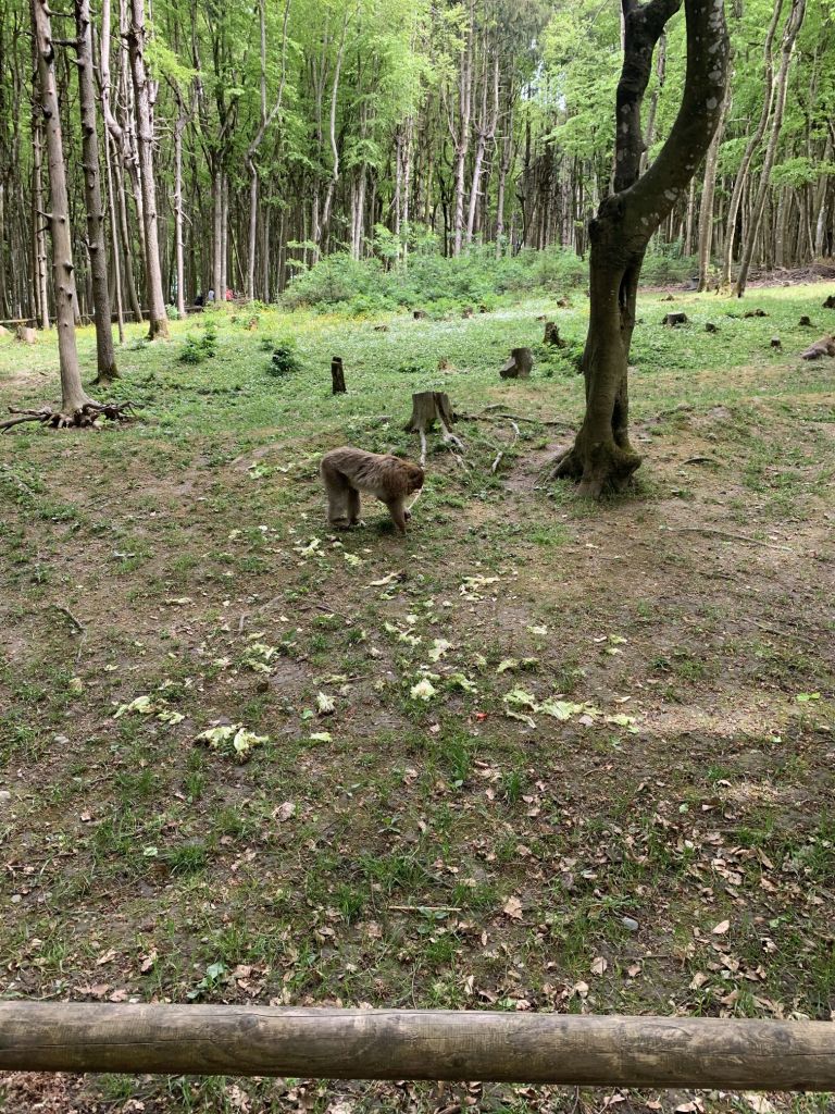 Die Kilometer, die uns jetzt noch zu unserem Tagesziel fehlen, reiten wir auf einer Arschbacke ab. Gegen 14.00 Uhr sind wir am „Affenberg“ nahe Salem. Wir haben uns diese Attraktion als Tagesausflug für die Mädchen ausgesucht. Zum Glück war uns das Wetter hold, nicht selbstverständlich Anfang Mai in Deutschland!