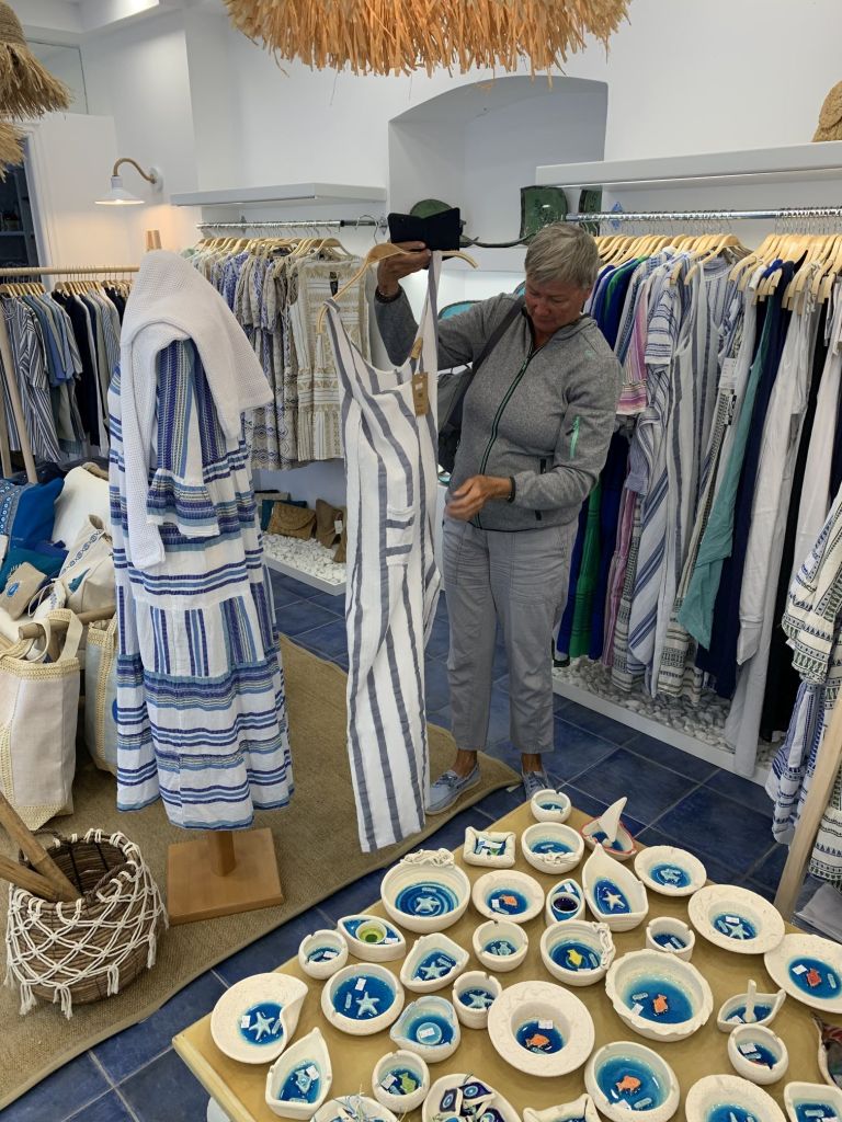 Das traf sich insofern gut, weil Sibylle ohnehin noch einmal in der Boutique in Agia Marina nach einer Hose für ihre Tochter sehen wollte. Wir packten also unsere Siebensachen fertig und fuhren dann, etwas verfrüht, in den Ort auf der anderen Inselseite.