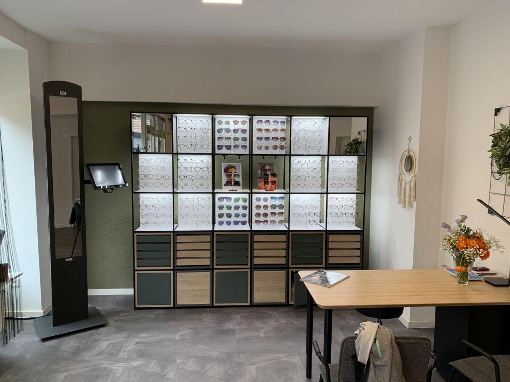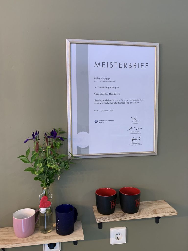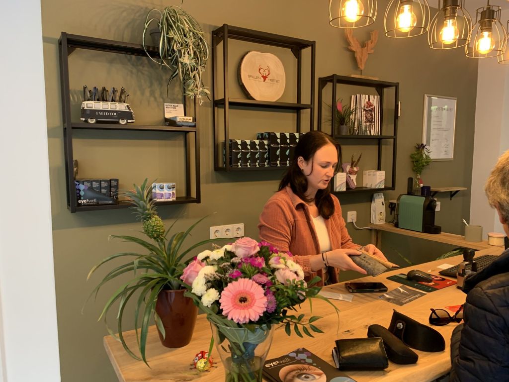 Pssst jetzt, wir müssen uns benehmen. Erste Kundschaft verlangt nach der Optikermeisterin.