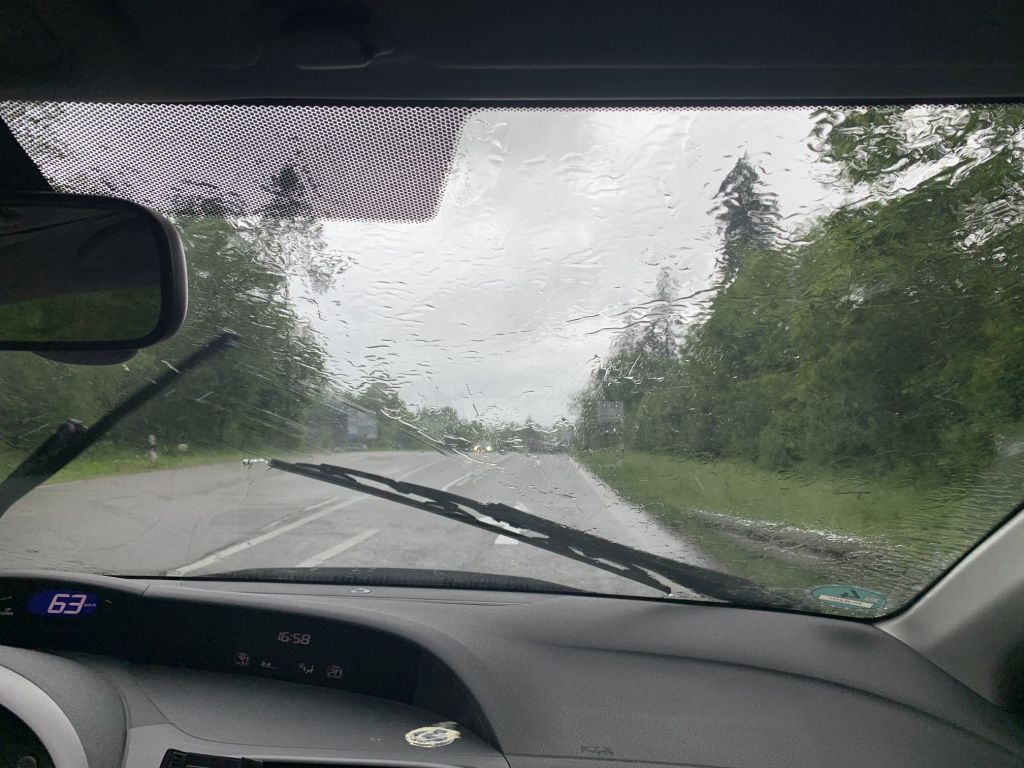 Danach geht es zurück zu Sibylles Bruder. Leider gießt es wieder wie aus Kübeln, die Fahrt macht keinen Spaß.