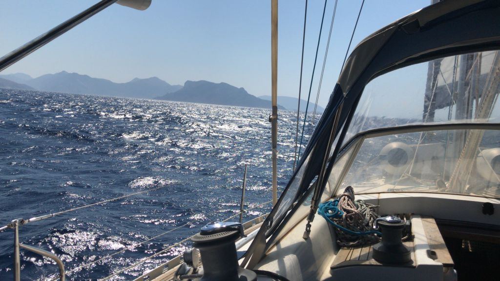 Es ist wie immer – Bilder können im Ansatz nicht wiedergeben, wie sich das am Schiff anfühlt wenn man aus der „sicheren Bucht“ herausfährt! Der Wind war kräftig, wir haben uns daher entschieden uns nur von der Genua ziehen zu lassen und haben gleich richtig Speed aufgenommen – so sollten wir rasch in Kos sein…