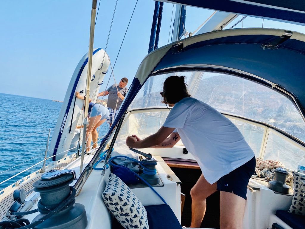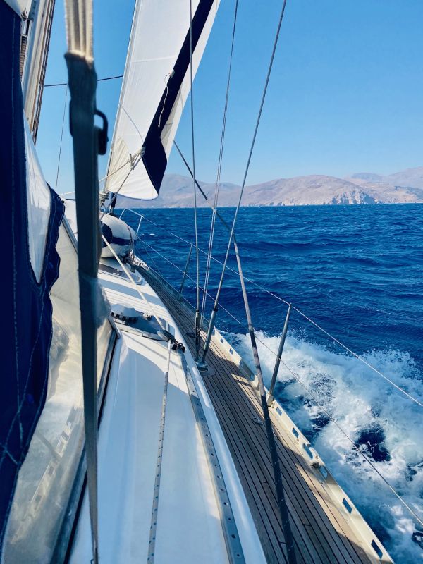 25-30kn Wind auf der Überfahrt nach Kos – sollen wir oder nicht? Gut, der Wind kommt aus der richtigen Richtung, wir kennen das Gebiet und auch die Strecke und den Zielhafen – gemeinsam wurde besprochen und am Ende entschieden – LEINEN LOS zum Törn 2020!