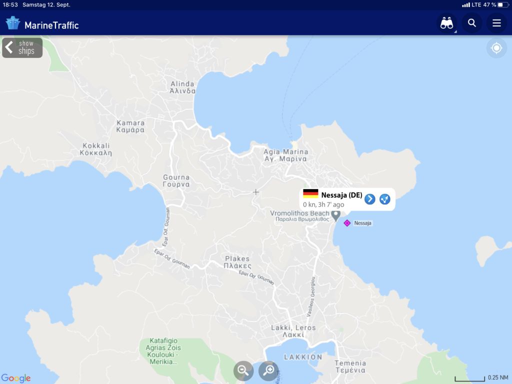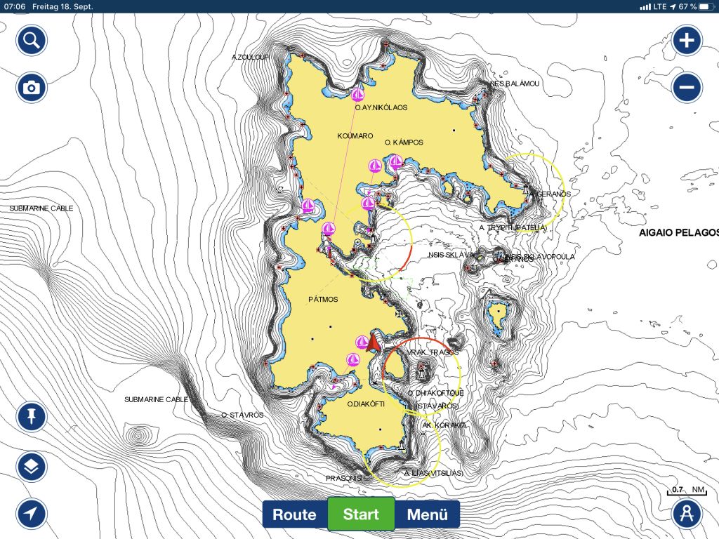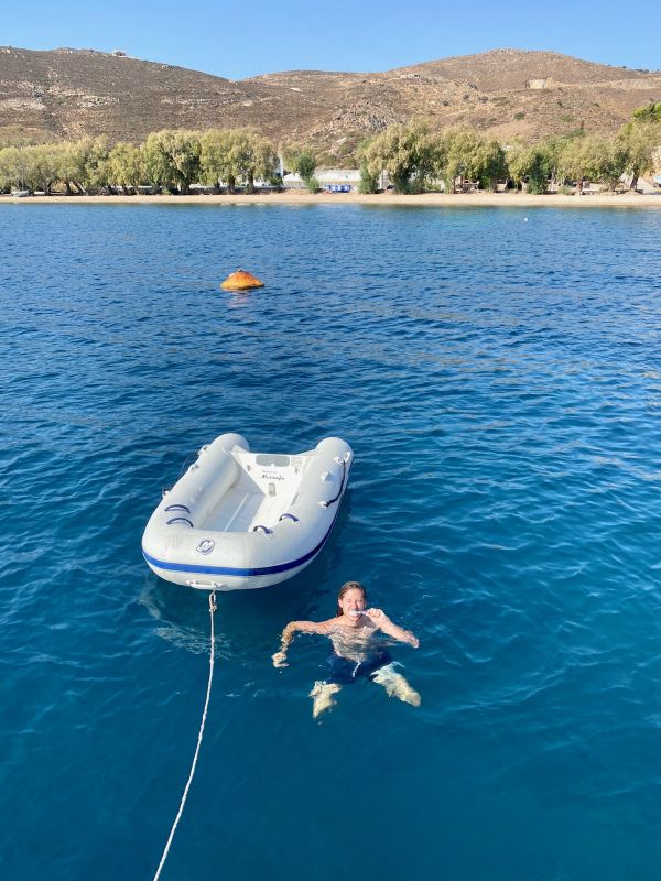 In Lipsi angekommen, haben wir uns bewusst für eine Nacht am Anker in der Südbucht entschieden. Ich wollte die neue App für den Ankeralarm testen, Sibylle den Fußmarsch nach Lipsi-Stadt machen und Franzi und Mikey nochmals frei sein zum Baden und Chillen.