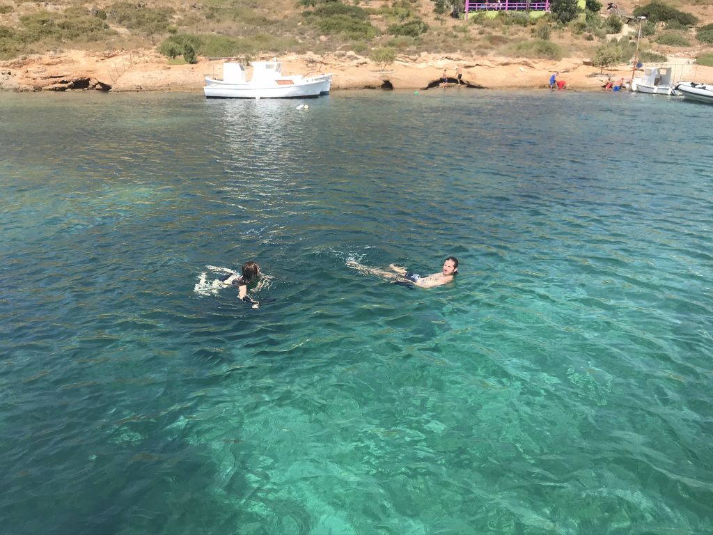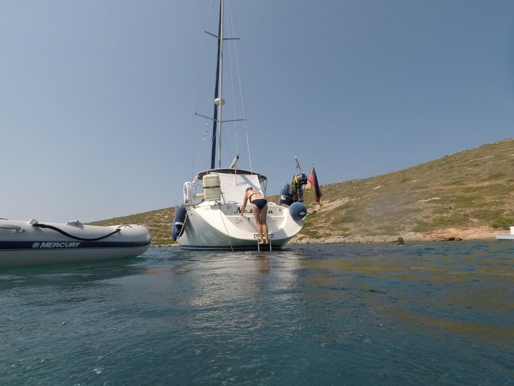 Die Fahrt nach Archangelos war unspektakulär, wir waren bald angekommen, hatten kurz Delfine gesehen und auch UNSERE Boje bekommen – was will man mehr? Ein langer Badetag bot sich an ihn zu genießen – und das haben wir ausgiebig getan…
