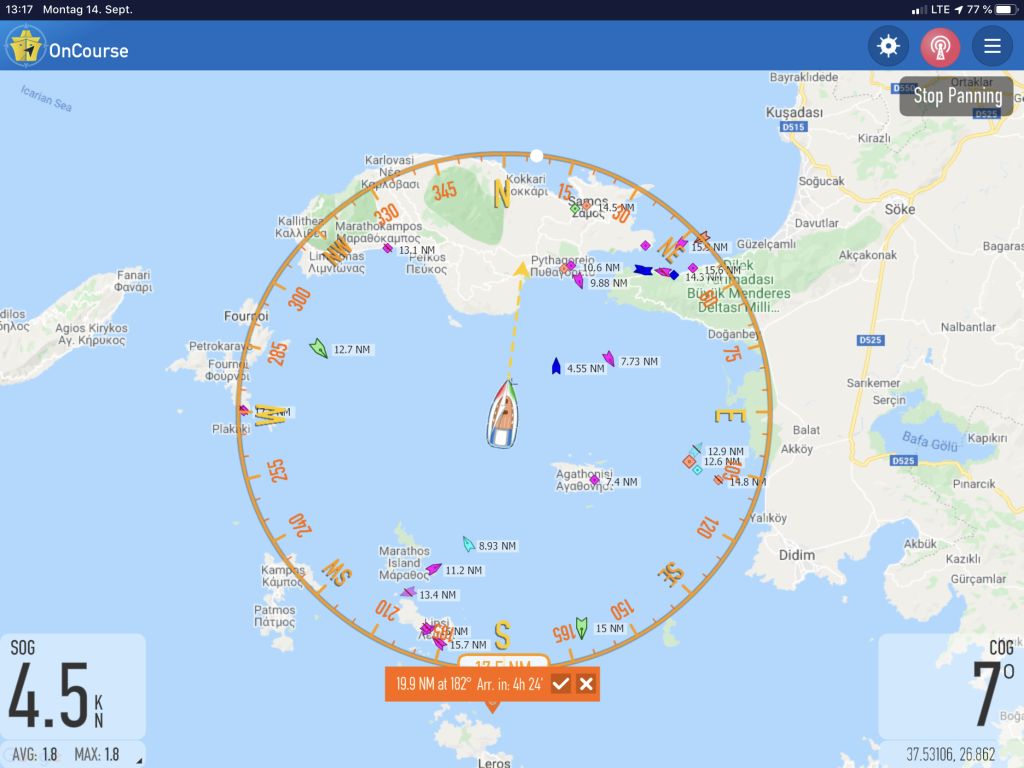 …ging es mit gewonnener Routine von Minute zu Minute besser! Nur nebenbei – man beachte die Anzeige der Logge im Navionics Screenshot 😉