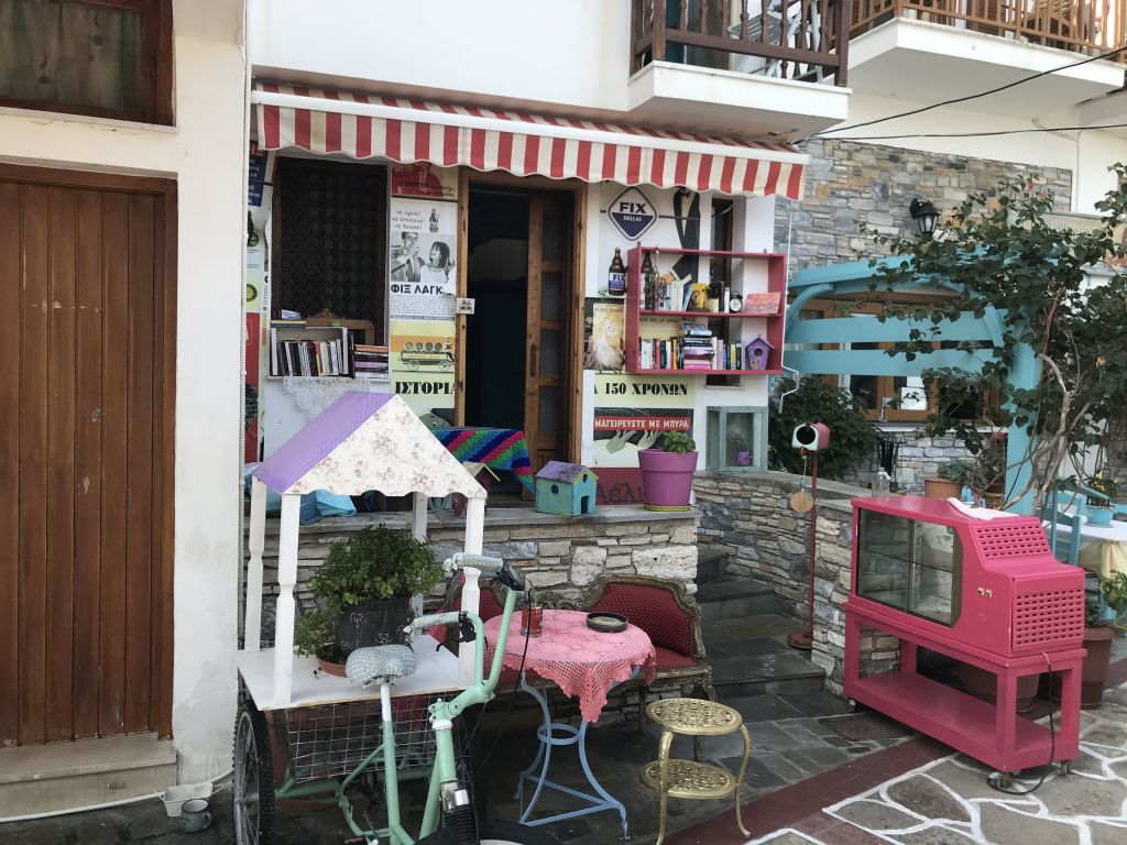 Vourliotes ist das ursprünglichere Dorf mit einem liebenswerten Dorfplatz – in beiden Locations haben wir uns ein kühles Getränk gegönnt.