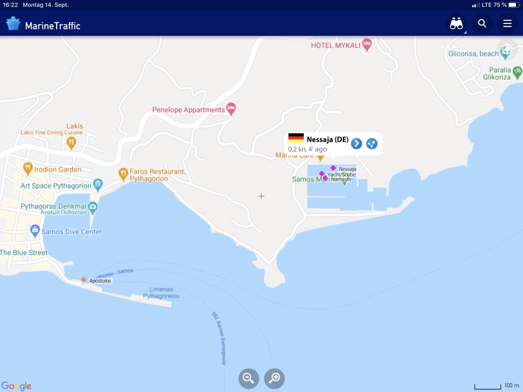 Man sieht schon, 4 bis 5kn Fahrt, an mehr war nicht zu denken. Der Weg zog sich wie Kaugummi. Trotzdem war irgendwann Licht am Ende des Tunnels und wir haben am Nachmittag die Samos Marina erreicht.