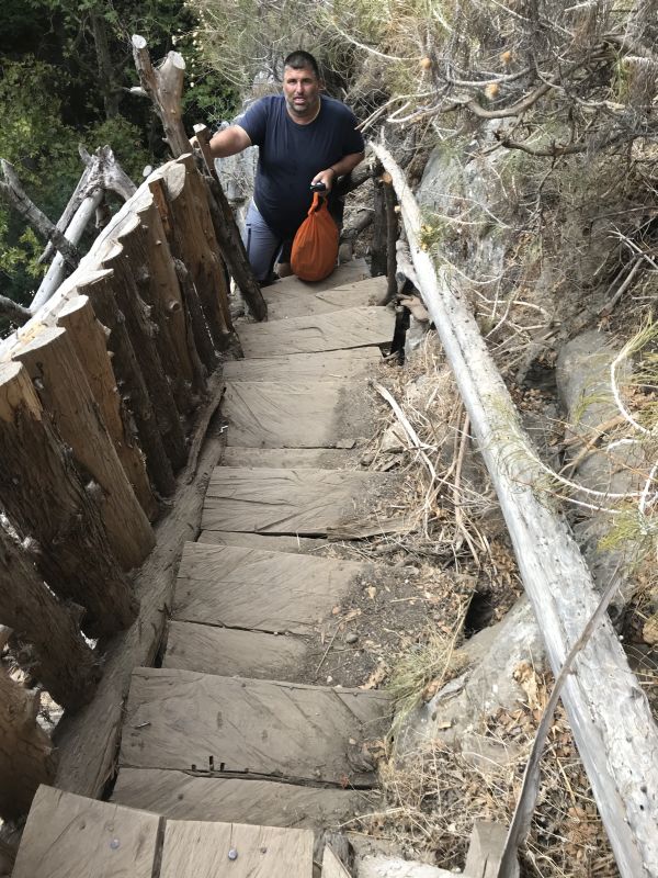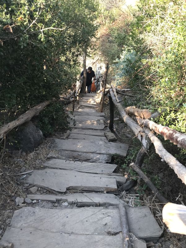 Über eine windschiefe und für deutsches Verständnis eher klapprige Treppe kann man entlang einer Felswand hoch in eine Restaurant kraxeln! Der H-A-M-M-E-R – man kann es fast nicht anders beschreiben.