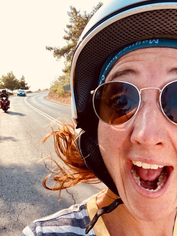Derart gestärkt ging es weiter! Die Roller plagten sich unter der Last der vollen Bäuche und brachten uns dennoch klaglos in die beiden Bergdörfer Vourliotes und Manolates. Die Wege über die Insel sind grün bewachsen in mit einem richtigen Flow zu fahren – das hat Spaß gemacht.