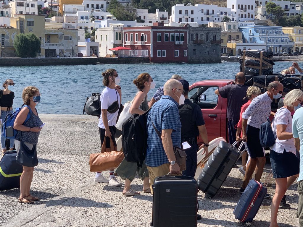 Die Ankunft selbst war unspektakulär – wie immer mussten wir ins Taxi hasten, nach Kos an den Fährhafen rasen um dort die vorgebuchten (wegen Corona) Tickets abzuholen und dann auf den Katamaran zu gehen. Das gebietet meist Eile, so dass es hierzu kaum Bilder gibt – die gibt es dafür IMMER von der Ankunft in der Marina, für mich so etwas wie „heimkommen“ 😉