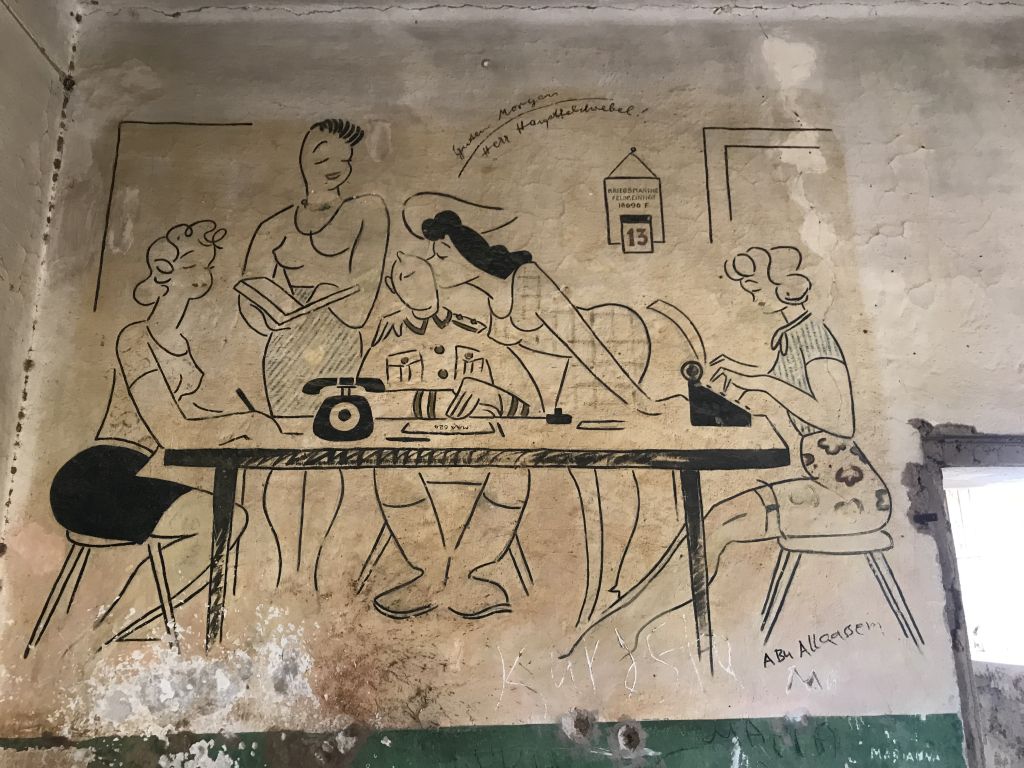 Auch für uns klingt der Urlaub aus – Sibylle geht nochmals mit Angelika wandern. Es gibt wohl so ein altes Gemäuer in dem deutsche Soldaten während der Besatzung im Krieg Wandmalereien hinterlassen haben…