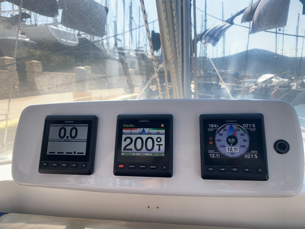 Der Navigationsbereich gegenüber, zeigt sich ebenfalls von seiner besten Seite. Es ist ein komplettes Garmin Navigationssystem verbaut worden und ein neues NMEA2k Netzwerk wurde aufgebaut. Alle relevanten Geräte sind integriert und kommunizieren.