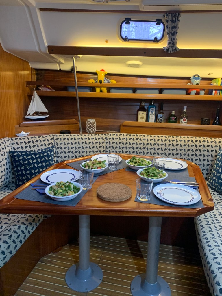 Soll zum Beispiel ein Geburtstag gefeiert werden – dann geht mehr! Wir waren schon zu zwölft im Cockpit beim Feiern – bei Chips und Tsipouro (und ohne Berührungsangst) geht auch das 😉